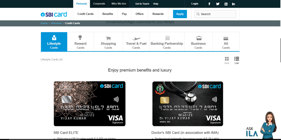 - If you choose to Browse a card then you will be shown different types of credit cards according to the categories. Each credit card has its own specifications