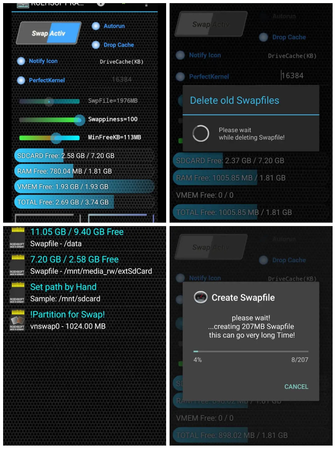 - It may take time to create a swapping file that may vary according to the device(Generally a class 4 memory card is necessary.
